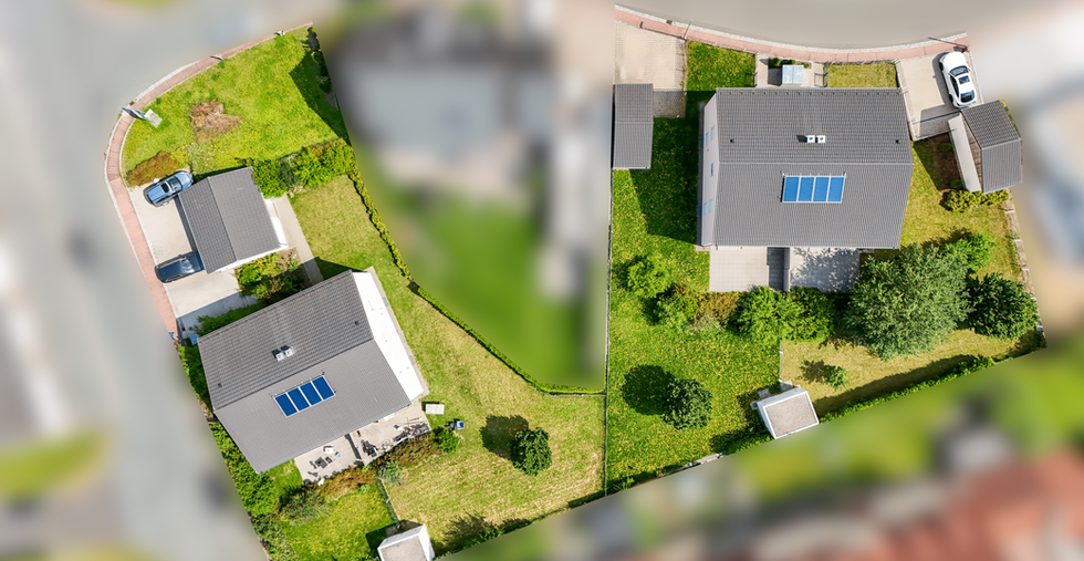 Eine eigene Garage mit Satteldach (ca. 19,31 m²) sowie ein zusätzlicher Stellplatz (ca. 18,69 m²).